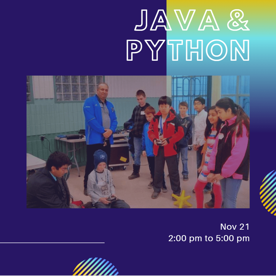 - Nov 21: Java & Python (2:00 pm – 5:00 pm)
