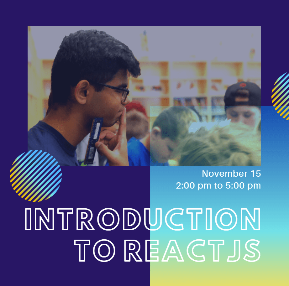 - Nov 15: Introduction to ReactJS (2:00 pm – 5:00 pm)